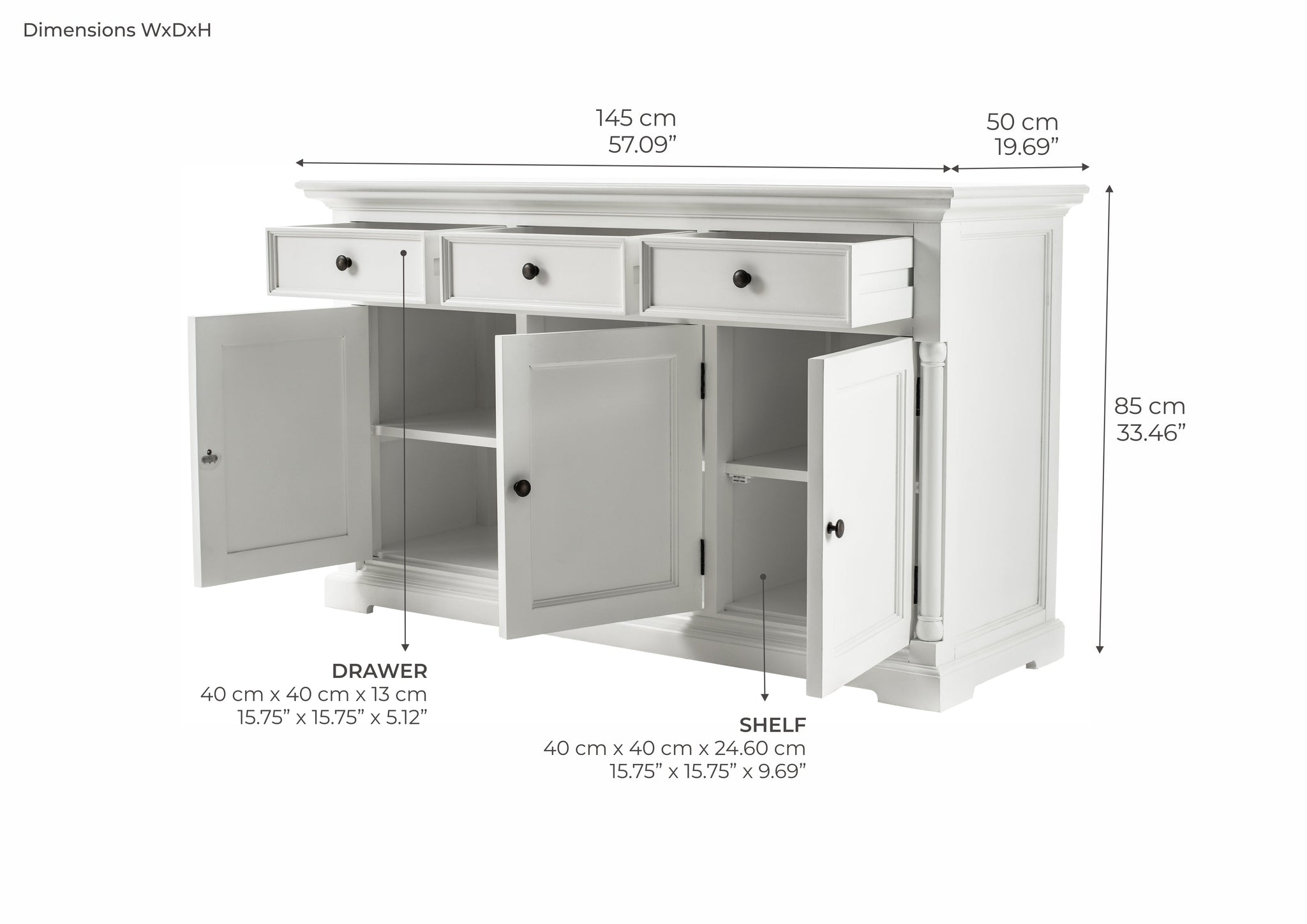 You can’t get more classic than a refined sideboard like this one from our painted Provence range. It’s got serious storage – three drawers, three cupboards with shelving inside. But the best sideboards are the ones that aren’t all about storage space, they deliver on looks too. Our favourite feature? Those two moulded columns at either end – sometimes it’s the smallest touches that matter most.