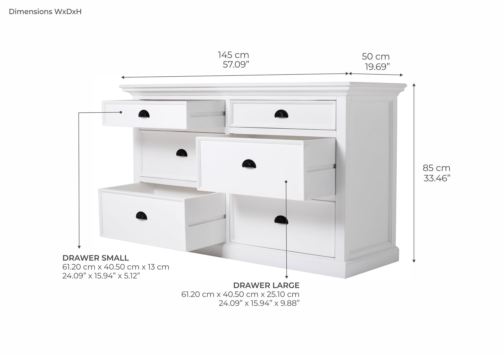 This dresser is a storage piece that every bedroom deserves. Its six-drawer design is wide-stretching but not too tall making it perfect for propping a mirror on top so it can serve as a dressing table should you desire. Two slimline drawers sit at the top with four deeper drawers beneath making it wonderfully versatile. Style tip: it’s all about the mirror on top. Keep things consistent by choosing one that matches, or create a contrast by picking out a circular design. Go for black or grey if you want to be really bold.