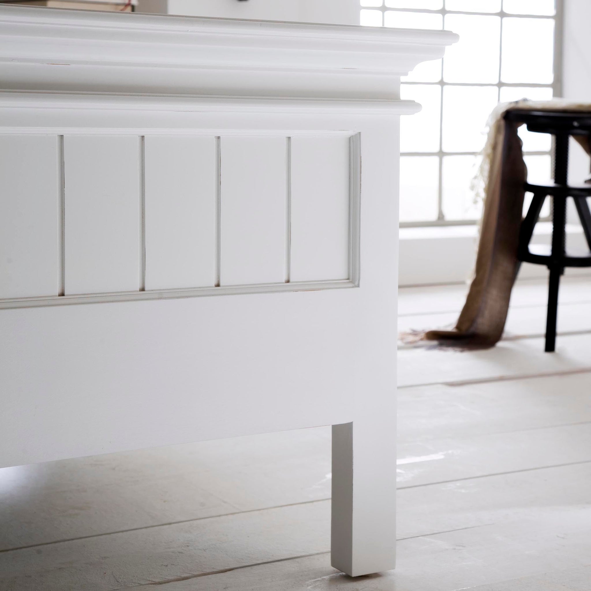 This is a bed that’s proof how solid timber, white-painted furniture can work in both traditional and contemporary scenarios. The flared cornice that makes the Halifax collection so recognisable is teamed with a tongue and groove panelled head and footboard to reveal a heritage influence. The bed looks the part with a floral bedspread, or taken down a Scandi route with washed linen. It doesn’t end there. It can take strong accent colours too, meaning it will work to your style and not the other way around. Style tip: why not make the most of the headboard’s ledge and use it as a display space? It’s got enough depth to perch photo frames and art.