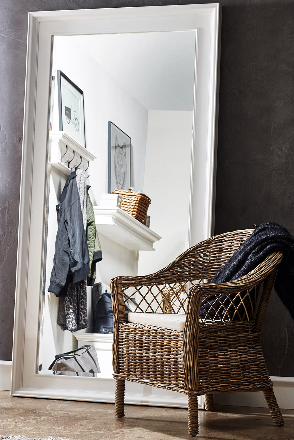 This cove-backed armchair works wonders in smaller spaces. Its shape is more nipped-in and its overall stance is more discreet than other pieces within the Wickerworks collection, which is what makes it so perfect as a bedroom dressing chair. We love the contrast between tightly-bound weave and the open diamond-structure of its centre section.