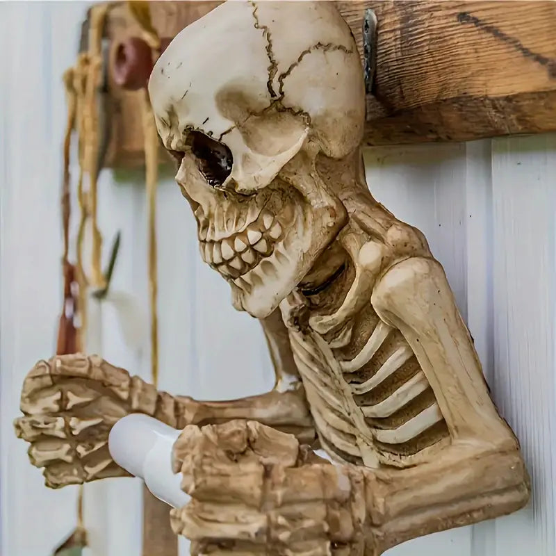 Add a touch of gothic charm to your bathroom with this Skull Toilet Paper Holder. Perfect for Halloween decor or everyday use!