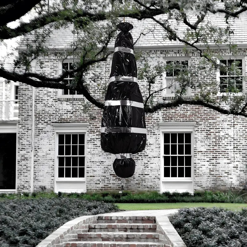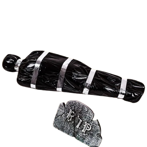 - Material & Sizes - Halloween victim prop and black bag are made of plastic. The tape is made of aluminized film. Assembled Halloween props measure approx 4.92ft /150cm will add more surprise to your guest.
