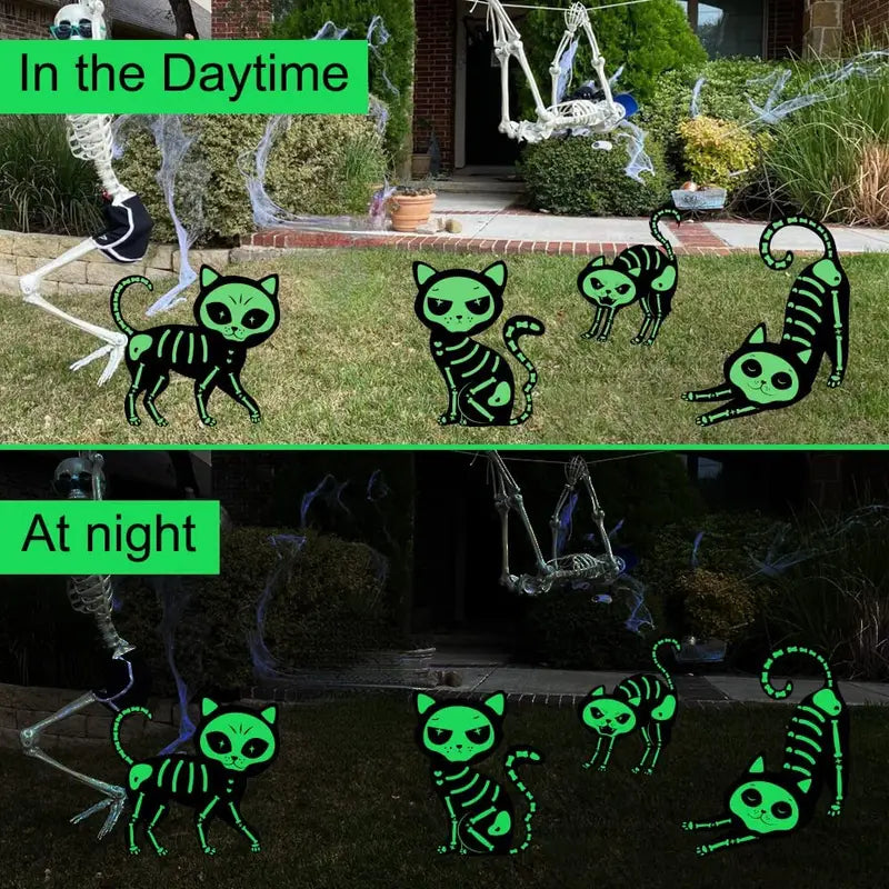 4pcs Black Cat Silhouette Yard Sign with Stakes