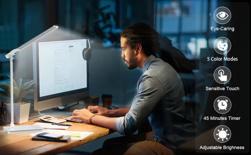 Touch Control Desk Lamp: Effortlessly adjust brightness levels and turn the lamp on/off with a simple touch, adding convenience to your workspace.