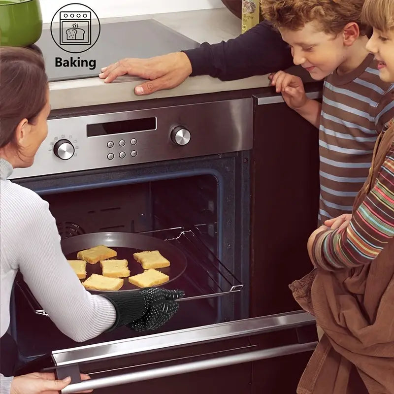 Protect your hands with our versatile fireproof silicone BBQ gloves, ideal for grilling, baking, and cooking indoors or outdoors.