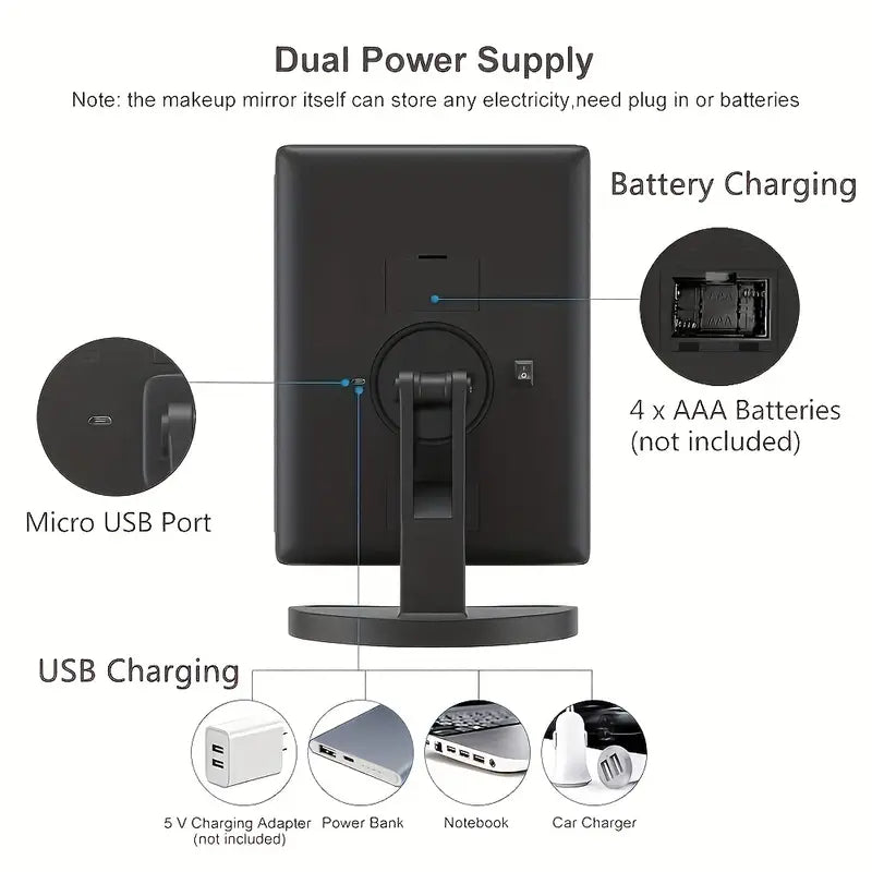 Elevate Your Beauty Regimen: Illuminate Your Routine with Lights 2X 3X Magnification Lighted Makeup Mirror. Experience Precision with Touch Control and Trifold Design. Dual Power Supply for Seamless Use Anywhere. Plus, Enjoy Dimmable Light for Your Perfect Glow