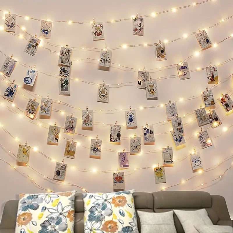 - Versatile Decoration: These string lights with clips are ideal for hanging photos, artworks, memos, or cards, making them a great decorative addition to any room.