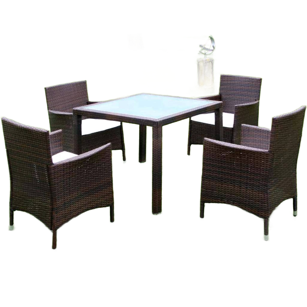 NNEVL 5 Piece Outdoor Dining Set with Cushions Poly Rattan Brown