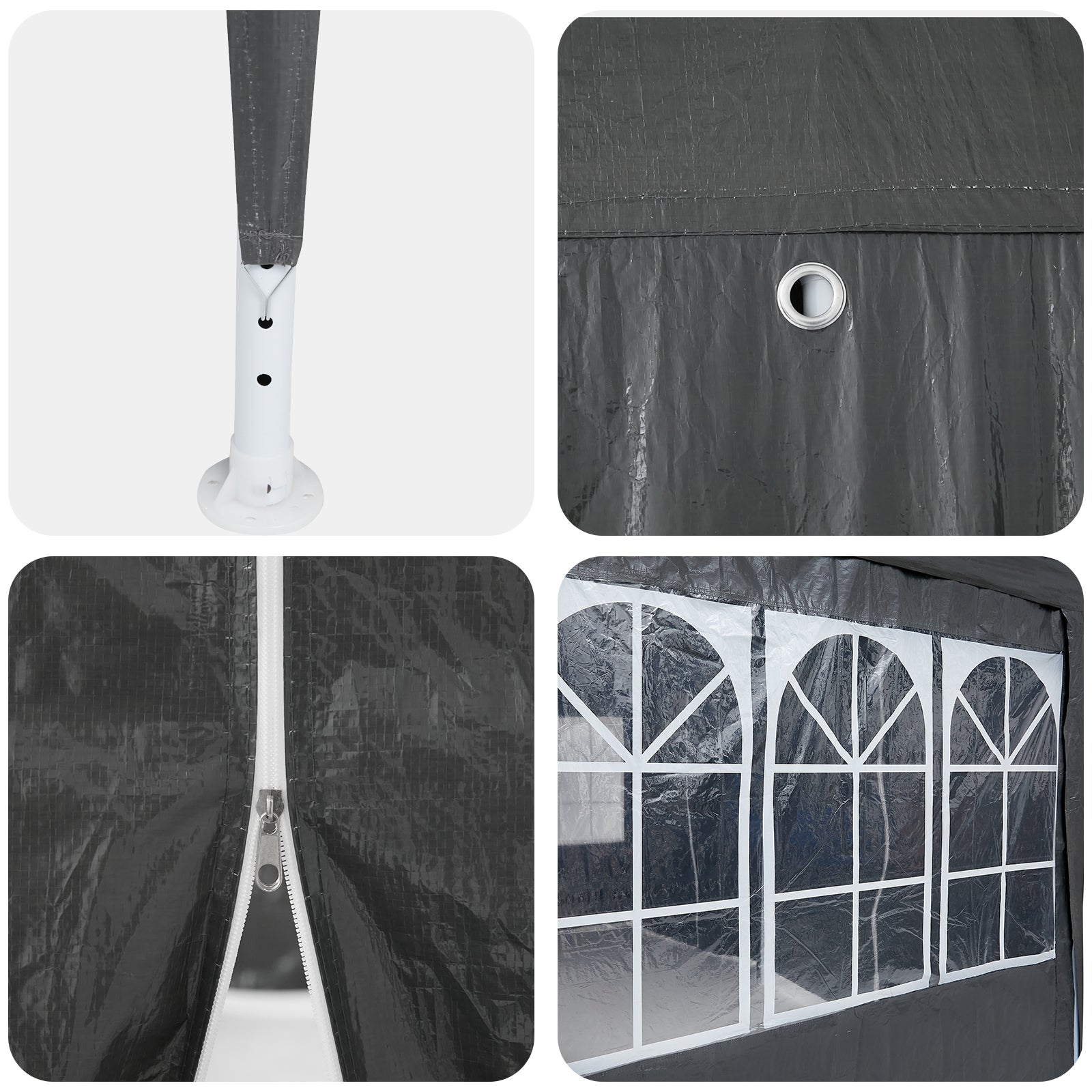 This awesome party tent's a brilliant choice for outdoor events. It offers loads of space and comfort for your guests. It���s all about being practical and straightforward, making it a real eye-catcher in any garden or deck setup, inviting folks to relax under its shade. With a neutral colour scheme and sleek design, it creates a classy vibe, perfect for weddings, parties, or just a casual catch-up. Its sturdy build means it���ll hold up well. Durable Polyester and Steel: This party tent���s made from strong polyester and steel. The UV-protected fabric fights off those harmful rays while looking sharp. The steel frame gives it stability and strength, keeping the tent secure during all outdoor fun. And the powder-coated finish helps combat , so your tent lasts longer. Spacious Interior: The tent offers heaps of room, perfect for big groups, whether it���s a wedding or a garden party. There���s plenty of space to move around, ensuring your guests are comfy and can set things up how they want. Efficient Zipper Closure: The zippered closure makes getting in and out easy while keeping your stuff secure. Super practical, letting guests open or close the tent as they need for a hassle-free event experience. Collapsible for Storage: The tent���s a total gem as it collapses down, which is spot on for event planners who are always hopping between venues. You can fold it up neatly, making it easy to transport and stow away, speeding up setup and pack-up. Manual Adjustment: With a system that lets you adjust things manually, you can tailor the tent to fit your event just right. This means hosts can change the setup as needed, making it flexible and user-friendly.