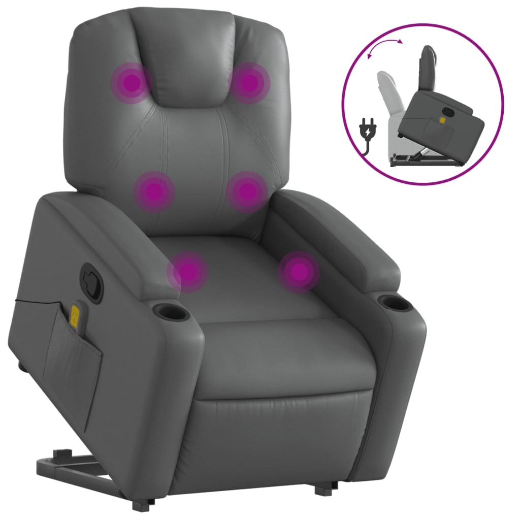 NNEVL Stand up Massage Recliner Chair Grey Faux Leather