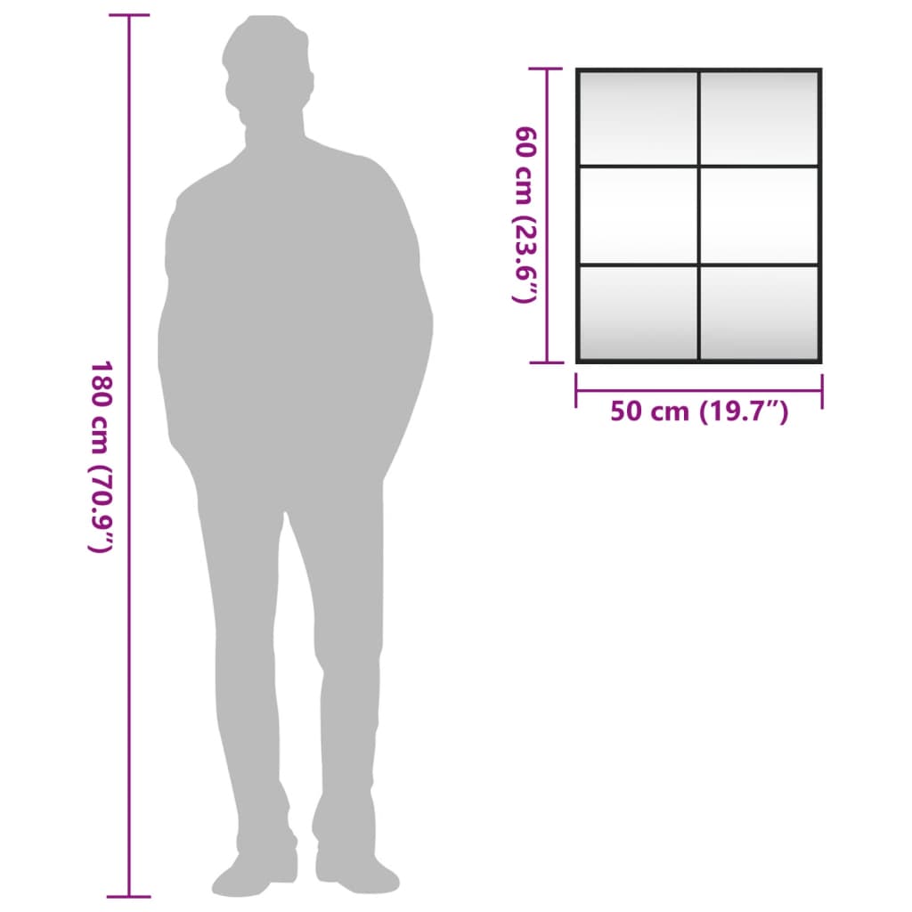 NNEVL Wall Mirror Black 50x60 cm Rectangle Iron