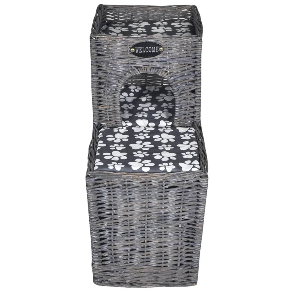 This cat house/castle will not only give your pet a comfortable place to sleep and relax in, but its classic willow design will suit any interior. It will make a great gift for your pet or animal loving friend! This is an extravagant and elaborate woven cat bed. The included thickly padded soft cushions make it really cozy and snug. Made of willow, this pet house is sturdy, yet lightweight enough to carry along. This pet house can also be used outside, in the garden or on the patio, for your cat, kitten, dog or puppy to sleep, rest or play. Pets will enjoy the sunshine while lounging on the top floor!
