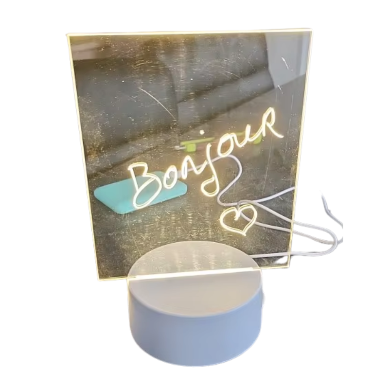 - This board lamp is with a free pen as a gift, you can leave message with this pen. The messages are easily removed by the eraser on pen top.