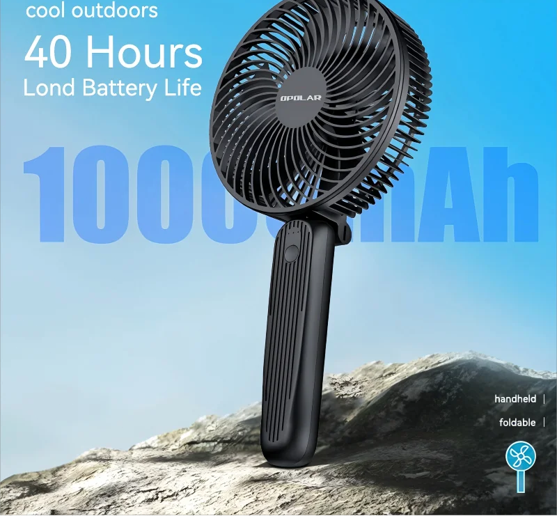 Foldable Handle Design: Can be used as a handheld fan or folded to stand on a desk or table for hands-free use.