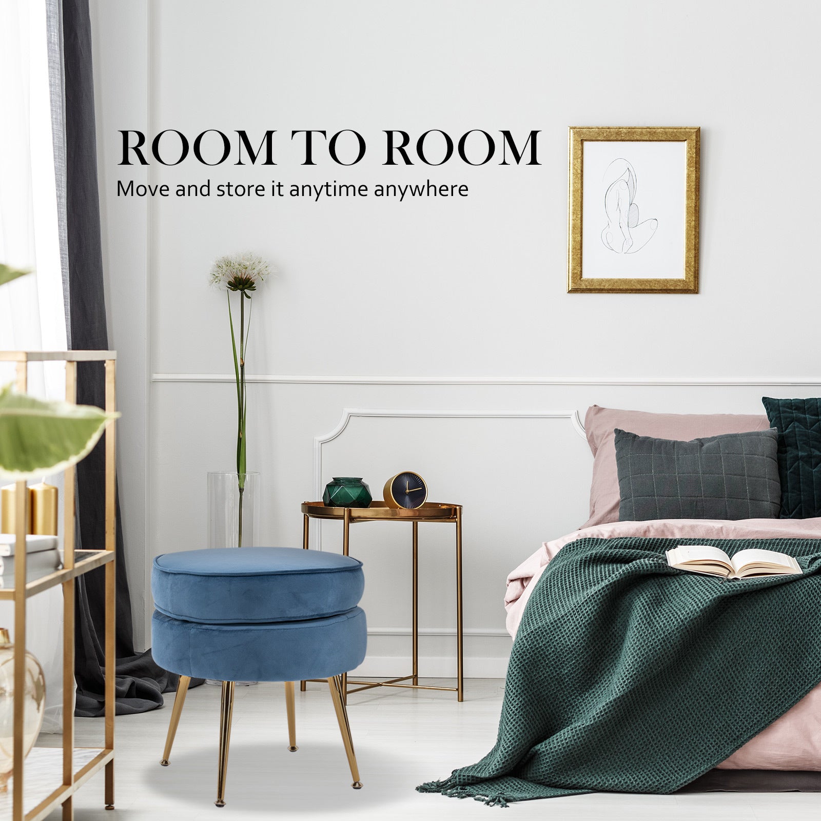 NNEDSZ Ottoman Foot Stool Velvet Fabric Metal Leg Round NAVY BLUE