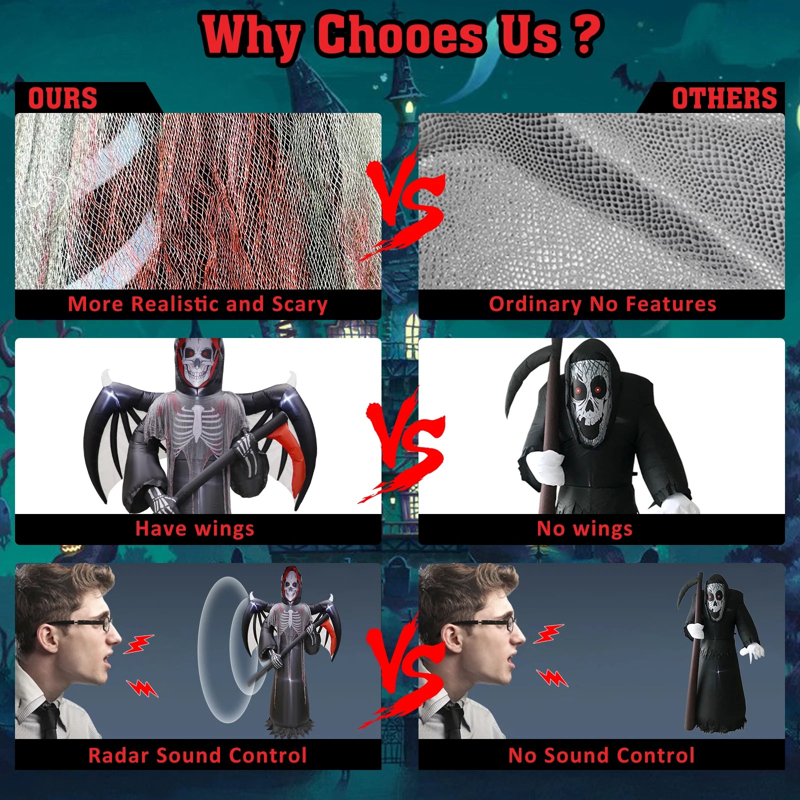NNEOBA Halloween Inflatable Grim Reaper with Radar Sound Control