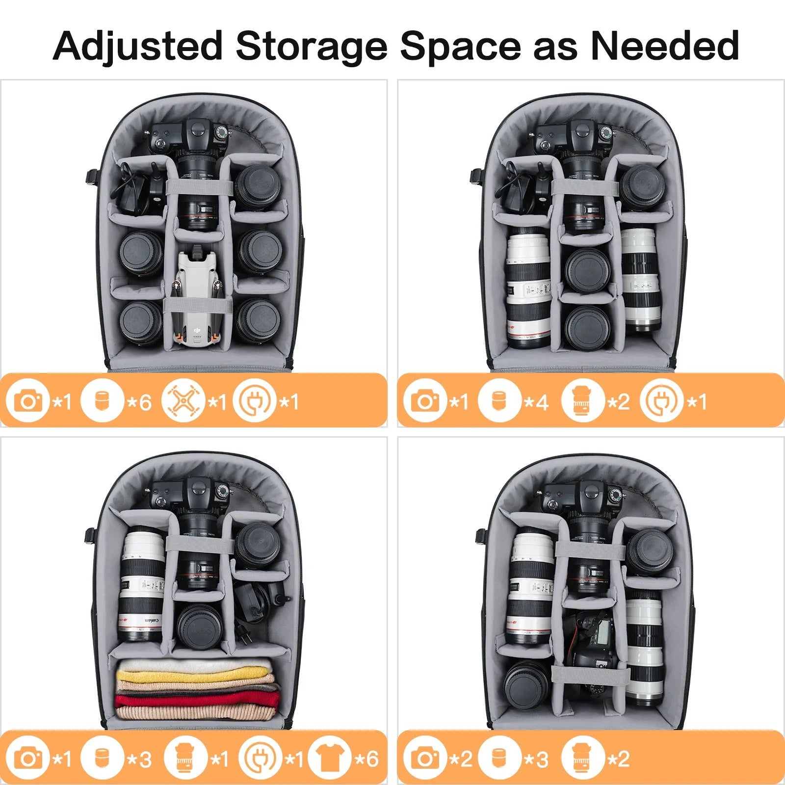 Large-Capacity Design: Spacious interior fits camera bodies, multiple lenses, drones, and personal essentials with ease.