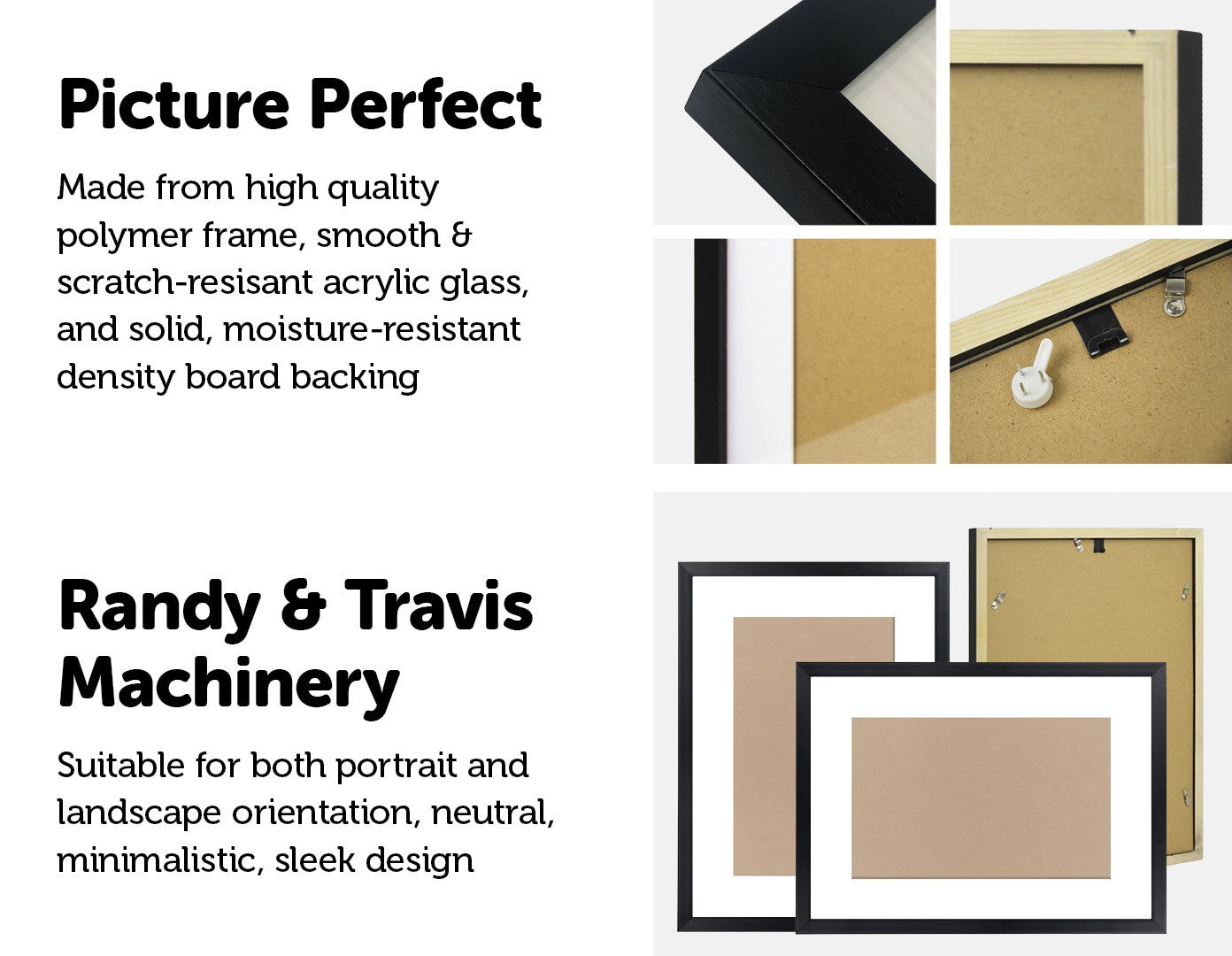 When you take the perfect picture, you want a frame that will showcase your artistry. Whether you're an amateur photographer or a collector of fine art, these gorgeous frames by Randy & Travis Machinery make the ideal setting for your collections. This three-piece set of frames allows you to hang three of your finest A3 photos or other, similarly sized artwork in a sleek black frame contrasted with a white mat. With these frames, you can create a gallery-worthy display from your photos. The ideal set for above the sofa or mantel, these neutral frames blend well with any colour scheme.
