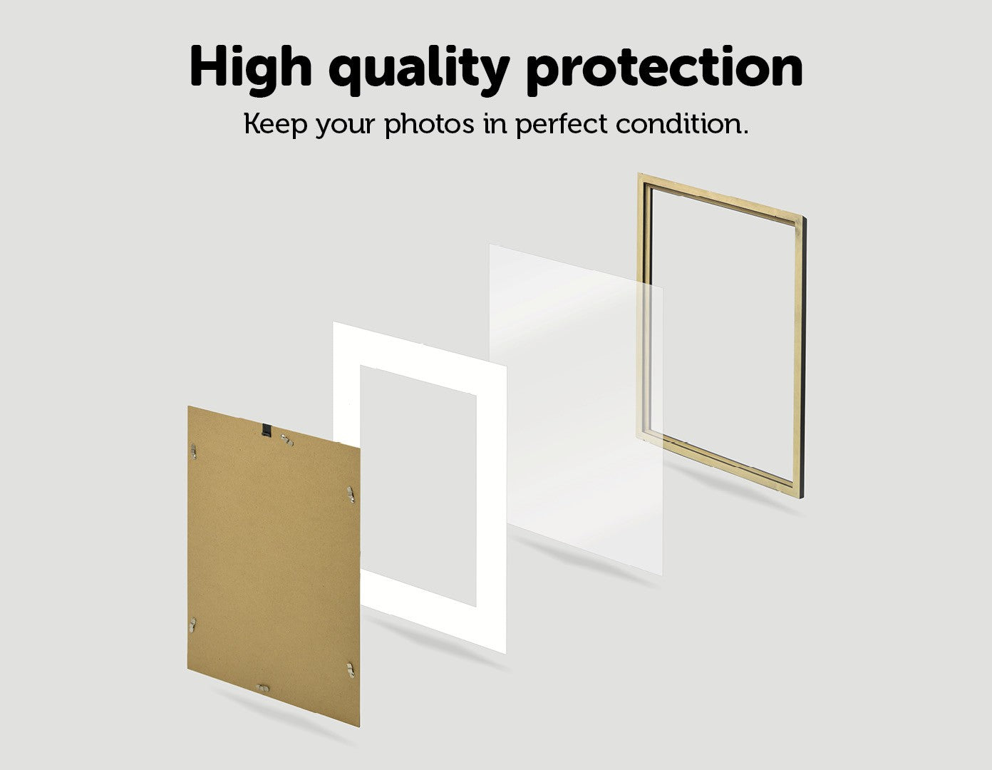 Suitable for both portrait and landscape orientation on your wall, these frames accommodate a wealth of arrangements. Whether you choose to display them parallel to each other, or in a diagonal, more contemporary arrangement, your photos will look fabulous on your wall. Acrylic glass covers preserve your photos' beauty for a lifetime. Moisture-resistant hardboard backing keeps your photos in perfect condition.