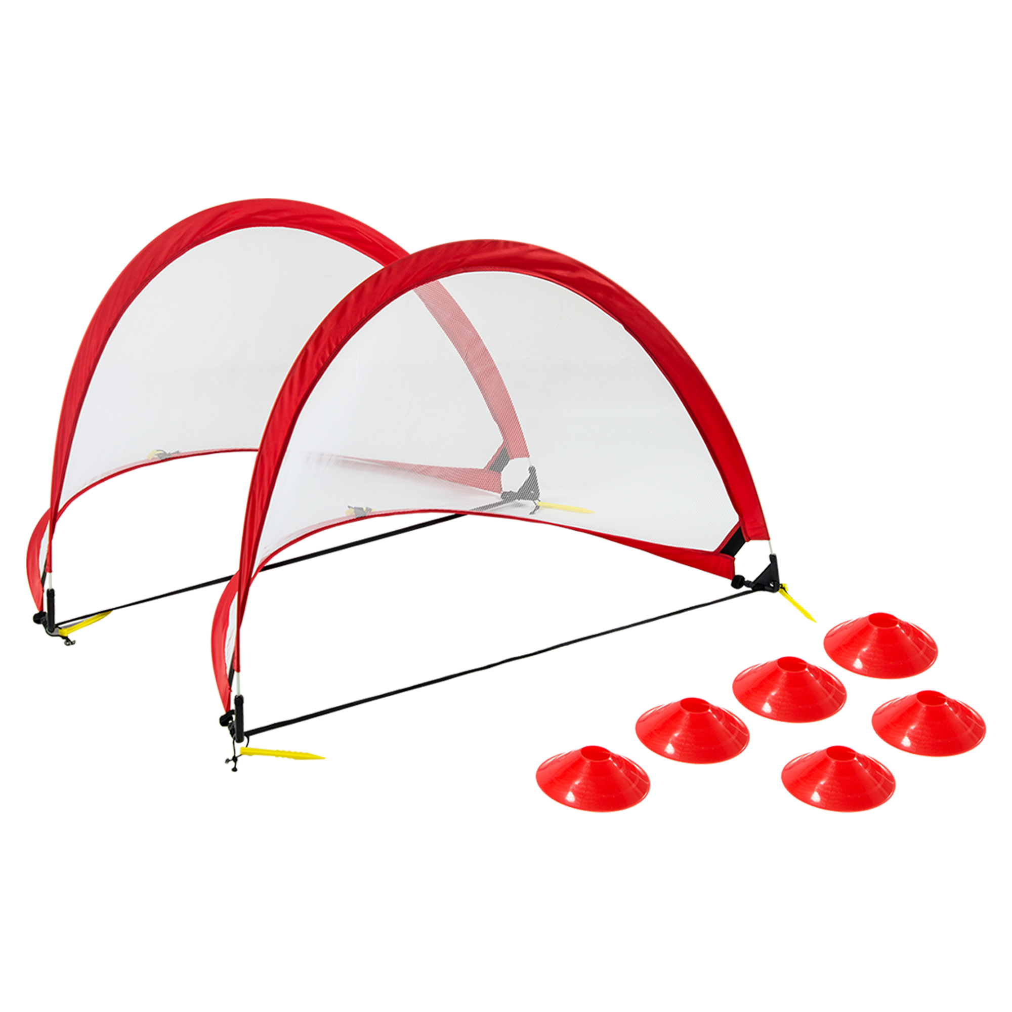 These four-foot-wide soccer goals pop open in mere seconds – and even have reflective strips so that your kids can keep playing even when it's dark outside. Take them along when you go to the beach, to the park, or a camping trip for extra family fun. Just fold them back up with a simple twist when you're done, pop them in the bag, and they'll be ready for the next time you want to play. This set is the perfect gift to surprise your kids for birthdays, holidays, for getting great marks at school, or just to say ‘I love you'. Order your set today!