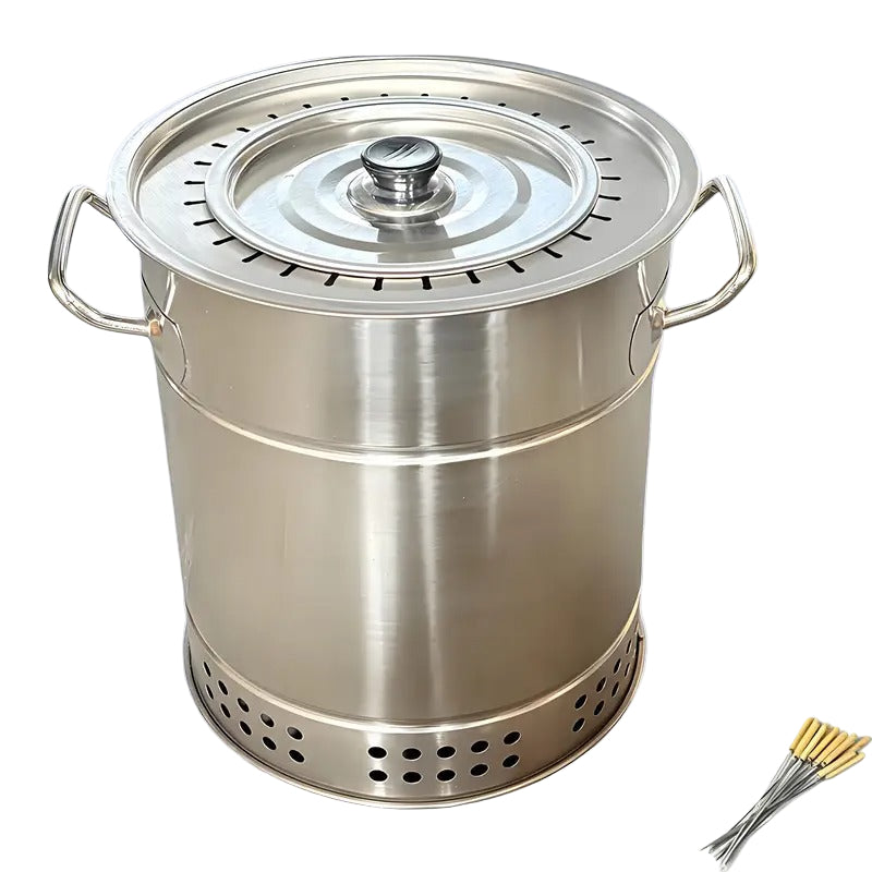 The NNETM Portable Round Charcoal Grill with 30 Skewers is designed for versatile outdoor and indoor cooking. It allows you to grill, roast, or smoke fish, meat, and vegetables with consistent heat. Its stainless steel build ensures durability while remaining lightweight enough for travel. Whether for camping, beach picnics, or backyard barbecues, this grill is built for convenience and functionality. The set includes 30 skewers, making it easier to prepare multiple servings at once.
