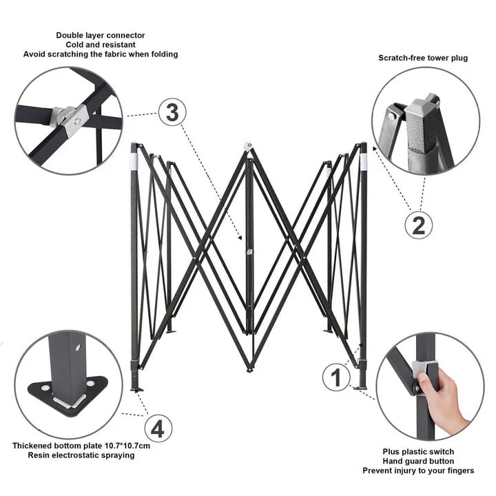 - Widely Usage in Various Places: Due to its portable design, our 2x2m canopy is convenient and ideal for both personal and commercial use,party, camping trips, BBQ or other activities in your own garden on backyard.