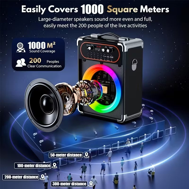 The NNETM Portable Wireless Karaoke Machine with Dual Microphones is designed for both indoor and outdoor entertainment. It connects easily via Bluetooth 5.3 or TV auxiliary input, letting you sing, stream, and play your favorite tunes anywhere. Its rechargeable lithium battery and compact build make it perfect for parties, picnics, or family gatherings.
