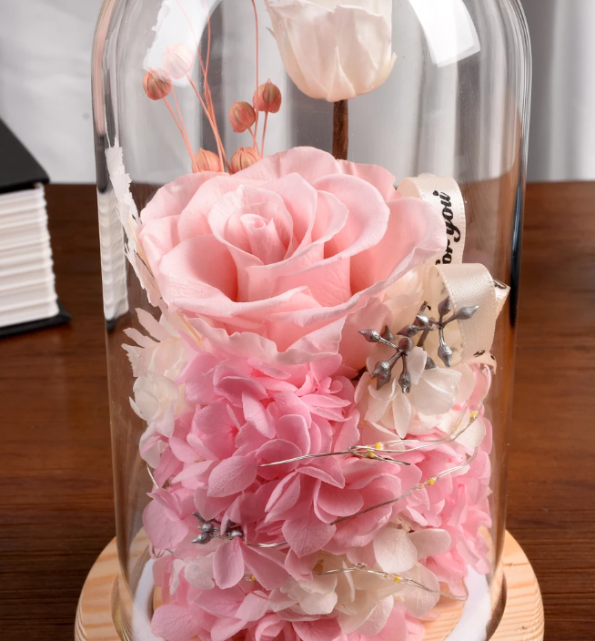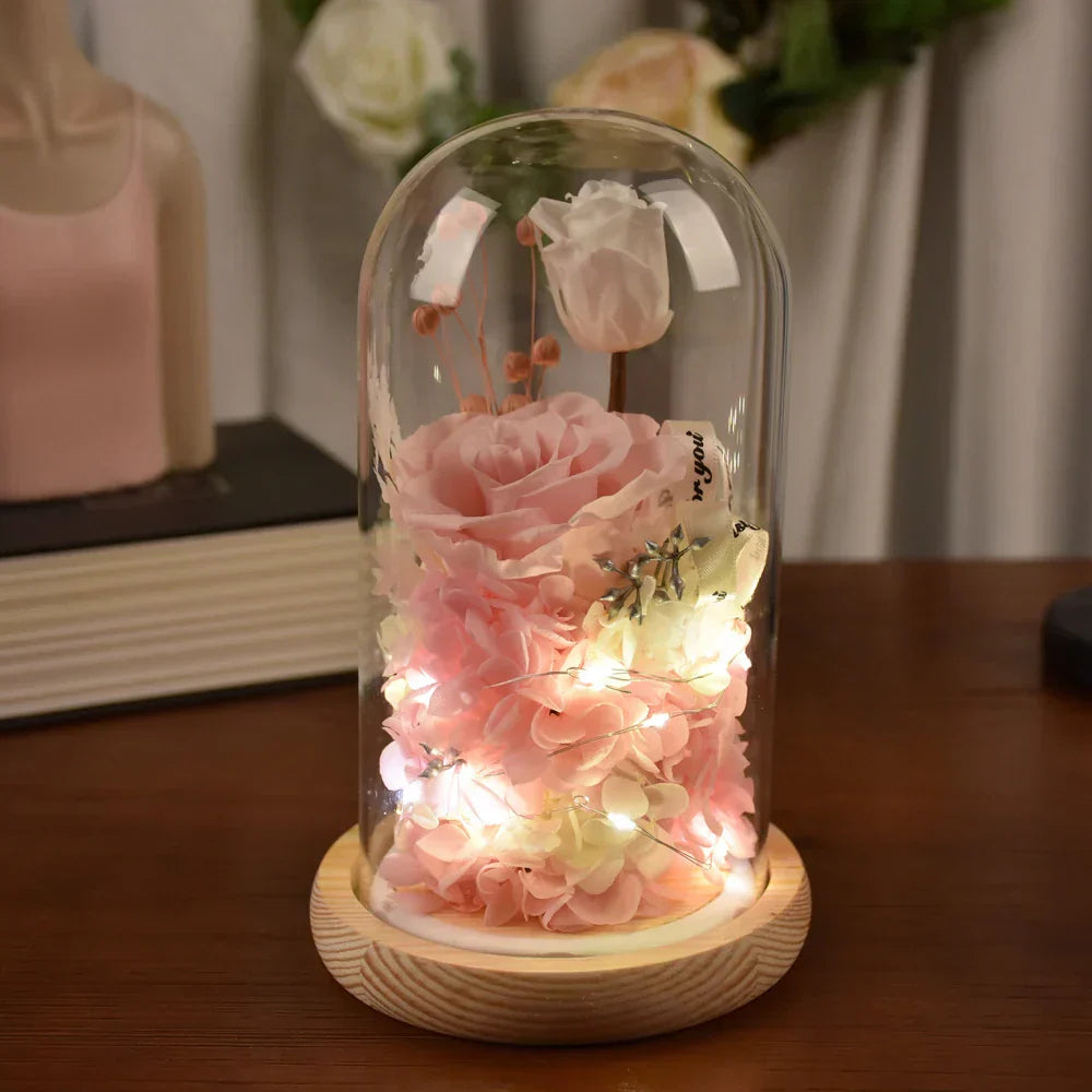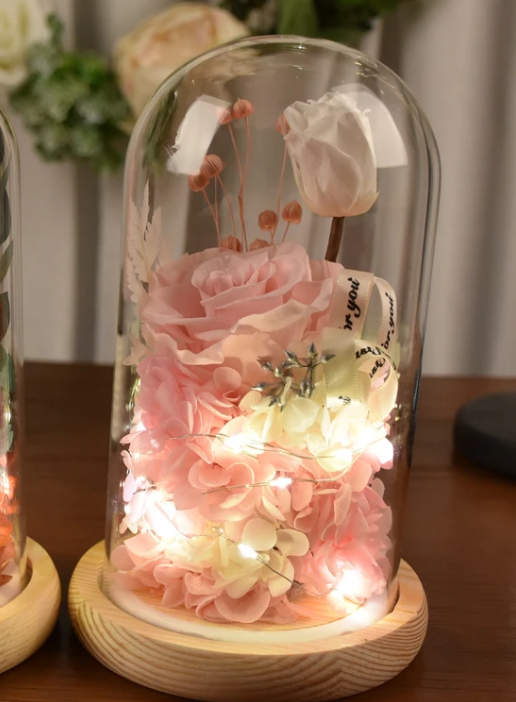 NNEOBA Preserved Rose in Glass Dome with Lights