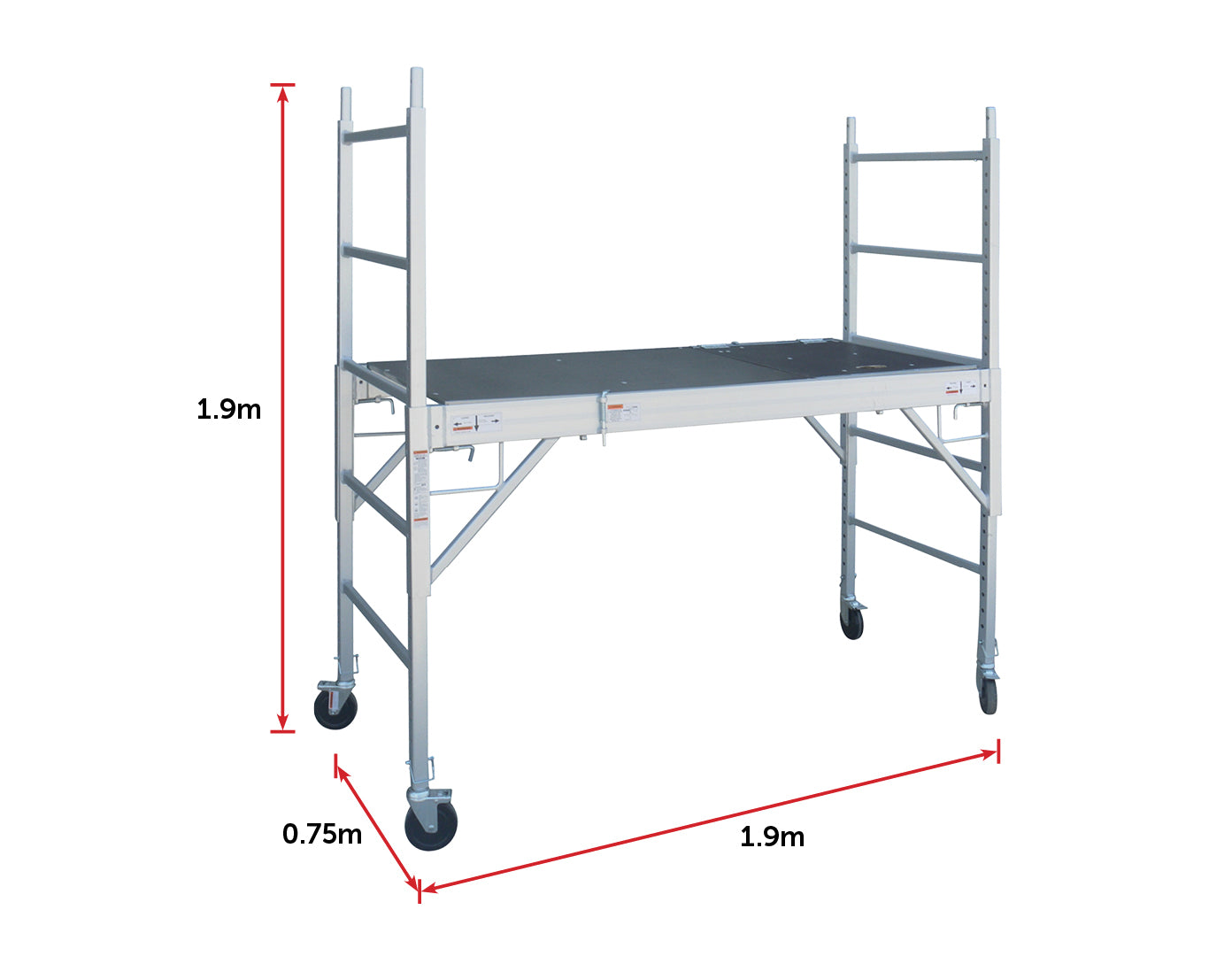- Scaffold size: 1.9 x 0.75 x 1.9m height