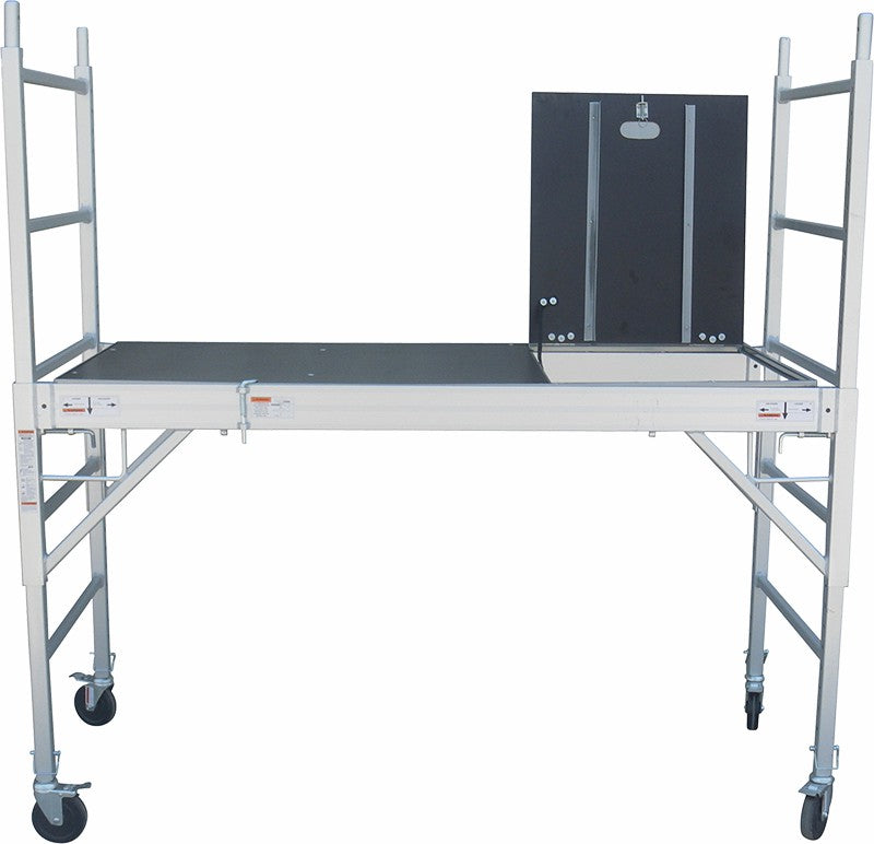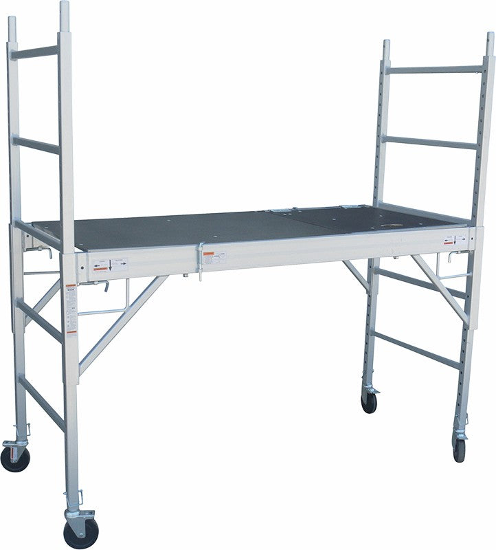 The 4x5 castors makes the aluminum scaffold mobile and easy to move about. The platform is adjustable to suit your task and the high quality Mariner plywood deck features a hatch door providing a secondary way to access or leave the scaffold. The scaffold can stand up to any weather - hot or cold and sunny or rainy. The one-level scaffold is easy to assemble and its foldable design makes storage hassle-free.