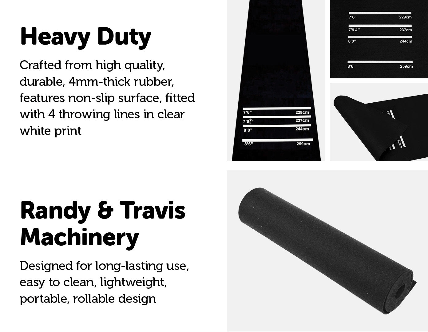 Whether you're a serious darts player or you play just to pass the time, you'll love this professional rubber darts mat by Randy & Travis Machinery. With four standard-measure oche dart throwing lines, you can use it to compete in regulation games of darts as well as for fun games at parties, pubs, and at home.