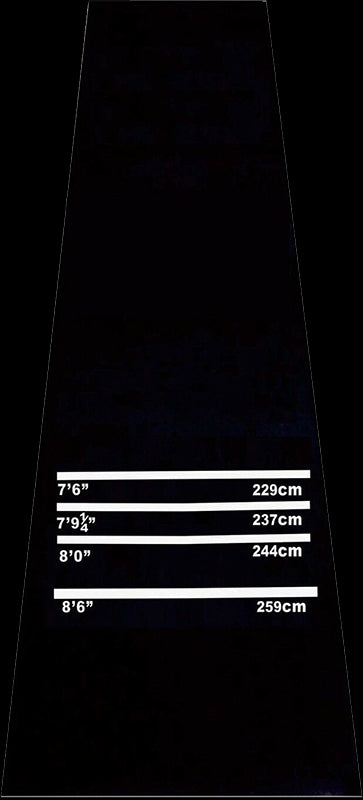 - Oche lines: 228.6cm, 236.85cm, 243.84cm, and 259cm