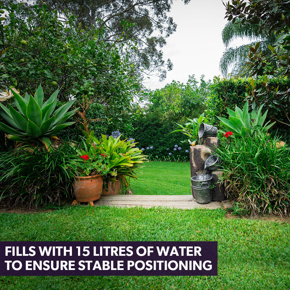 Assembled without tools in less than 5 minutes, this unique freestanding design features 4 tiers of flowing water. Once filled with 15 litres of water it is perfectly secure in any weather conditions.