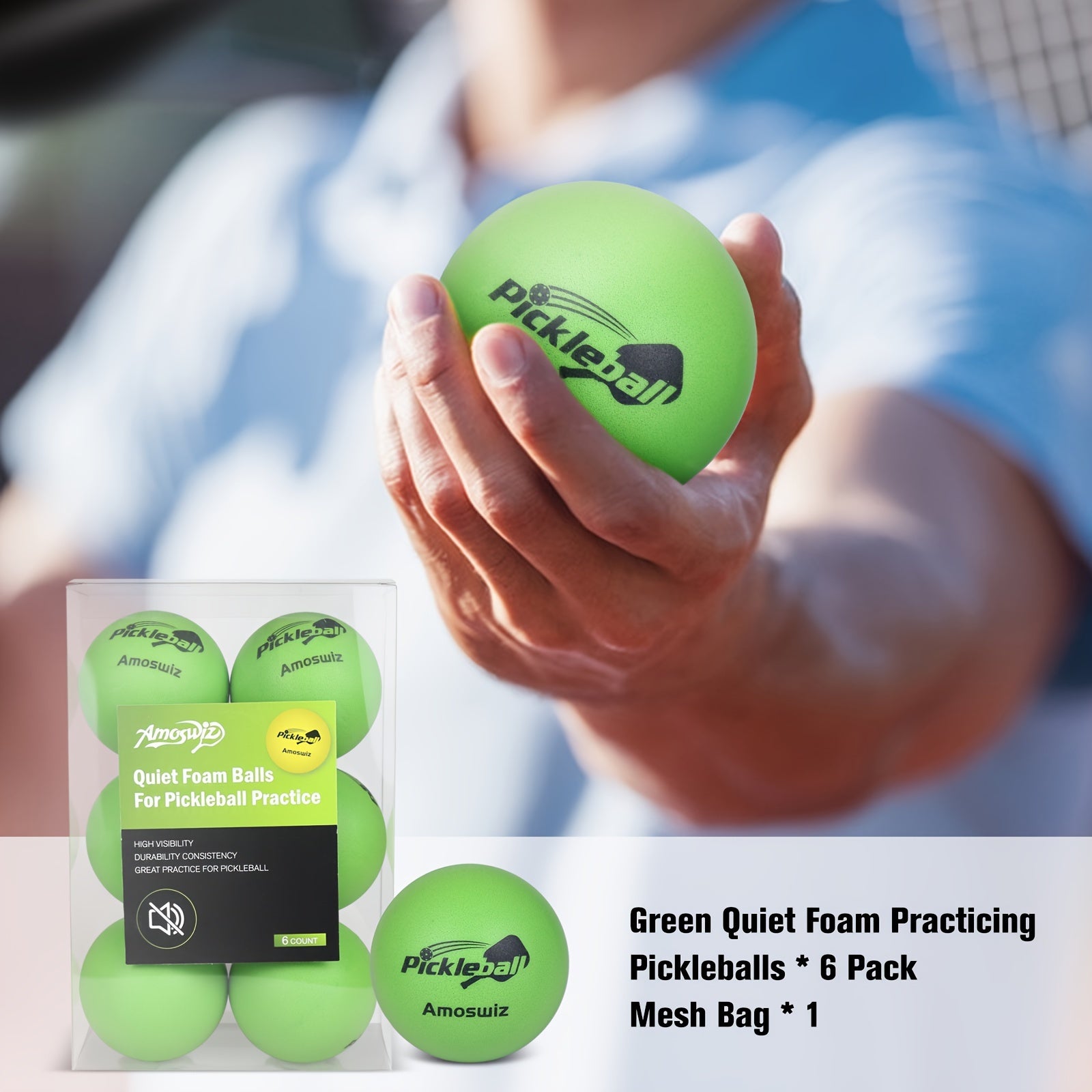 NNETM Quiet Foam Pickleballs are designed for players seeking a quieter, controlled training experience both indoors and outdoors. With a diameter of 7.3 cm, these soft foam balls offer the feel of standard pickleballs while minimizing sound and impact. Each pack includes six green balls and a convenient white mesh bag for storage.