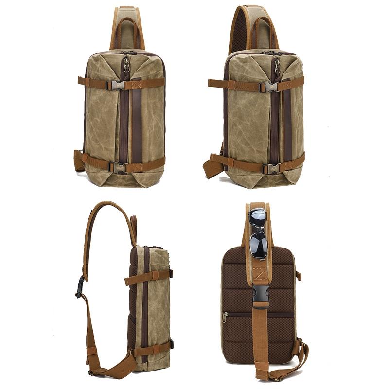• 1 x Retro Waxed Canvas Chest Bag Large Capacity Shoulder Crossbody Bag For Men