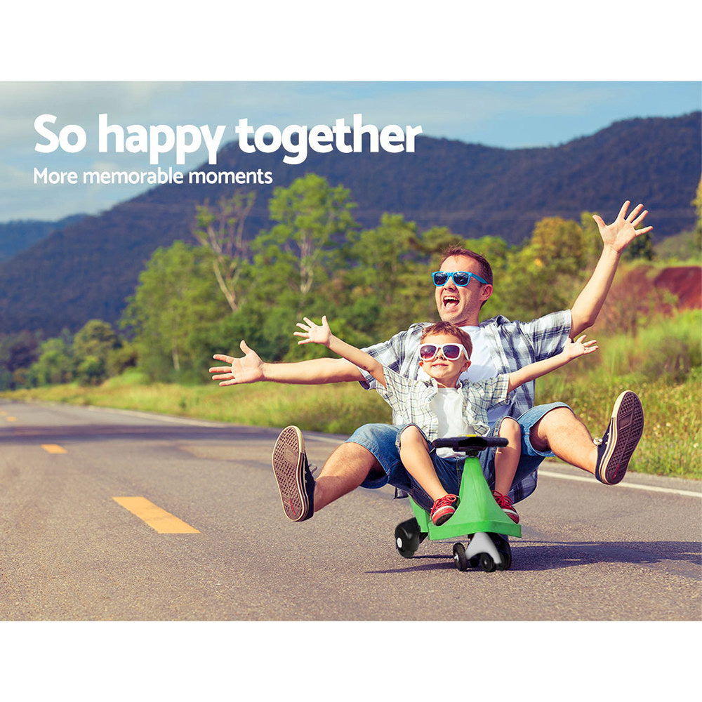 Our swing car is pedal-free and the steering wheel is used to control speed and direction. The car is made of ABS and PP plastic and has a maximum weight capacity of 130kg. As such, the swing car is suitable for use by adults and children 3 years and above. The car conforms to EN71 standards for safe toys.