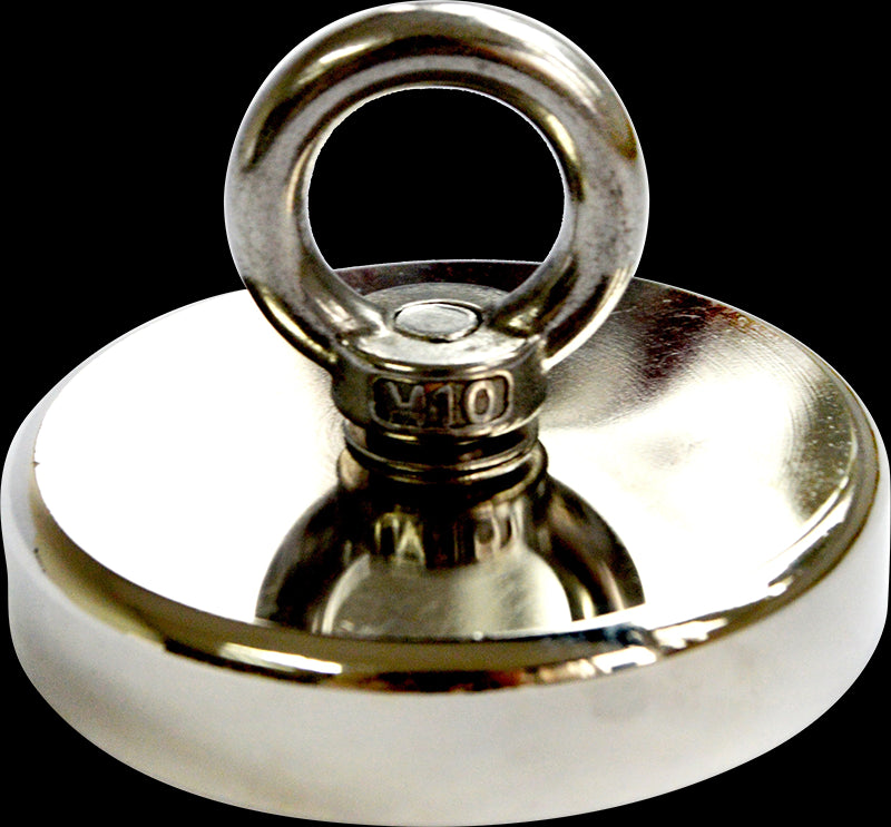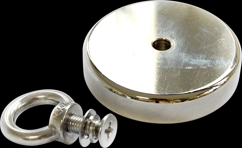 The countersunk hole allows many types of mounting applications including hook, knob, or included eyebolt. Screw it into a wall to hold tools, or position and hold lights, signs, and more. This type of magnet is also perfect for magnet fishing and retrieving applications.