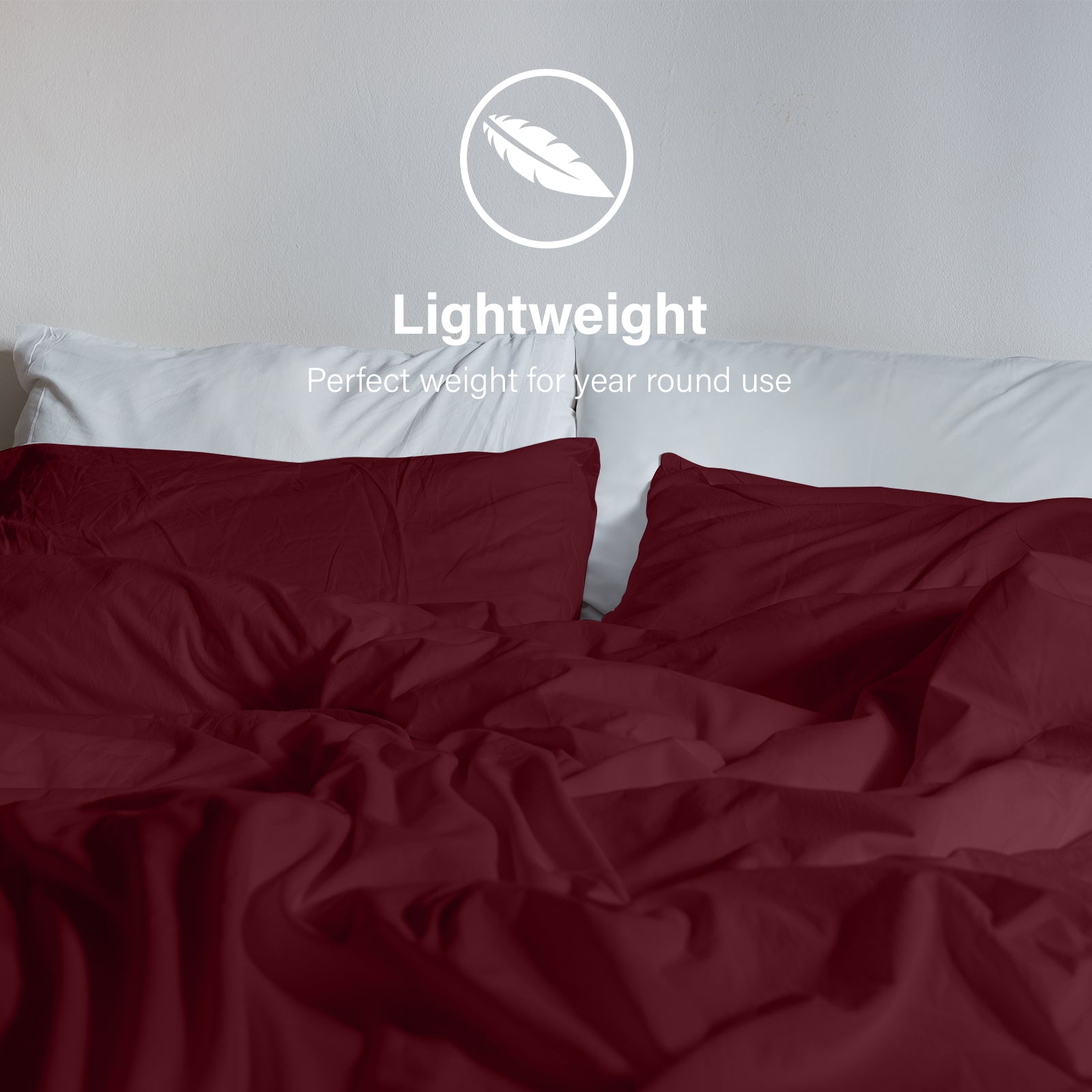NNEDSZ Comfort Vintage Washed 100% Cotton Sheet Set Fitted Flat Sheet Pillowcases Single Mulled Wine