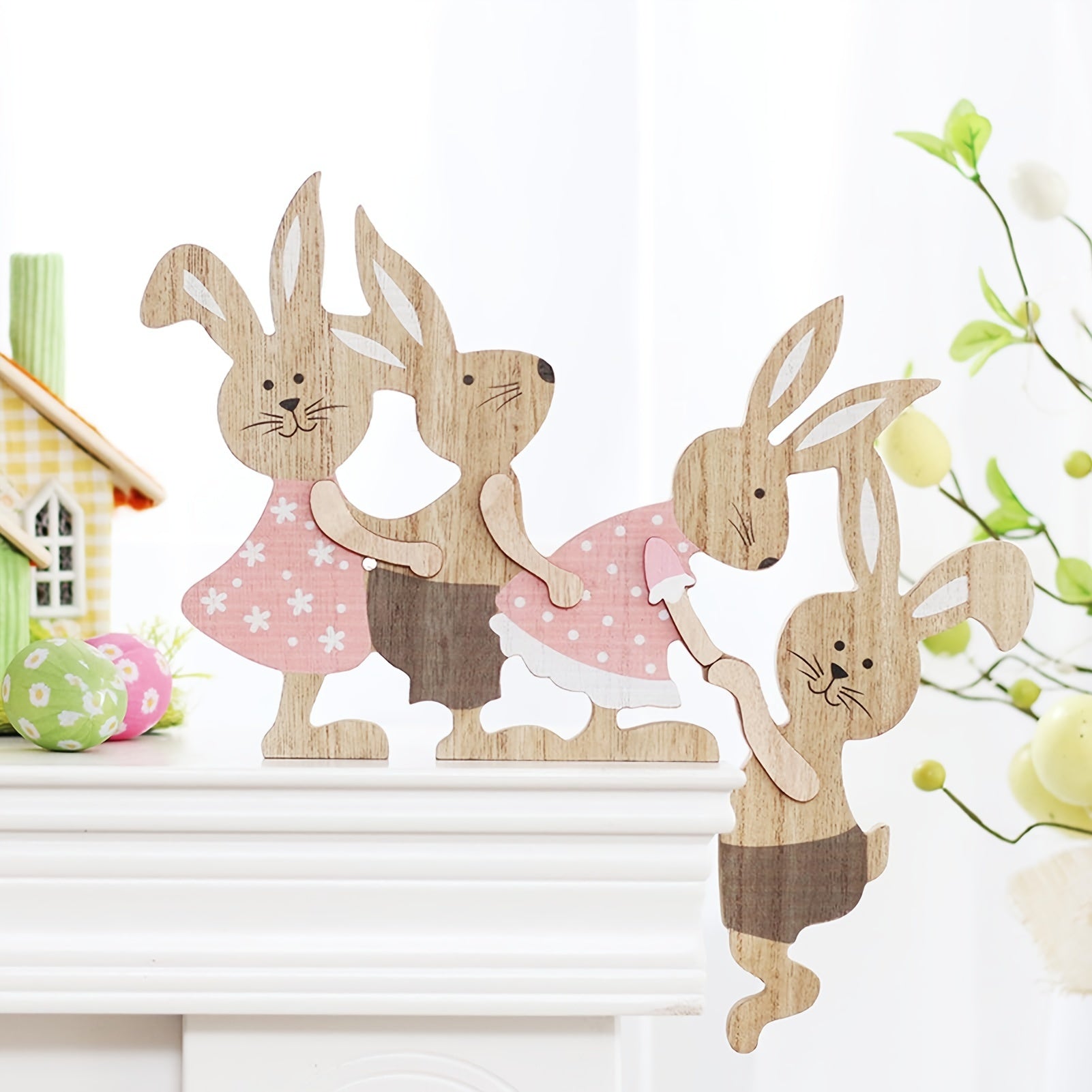 Charming rustic wooden Easter Bunny family ornament for festive decor, perfect for any holiday.