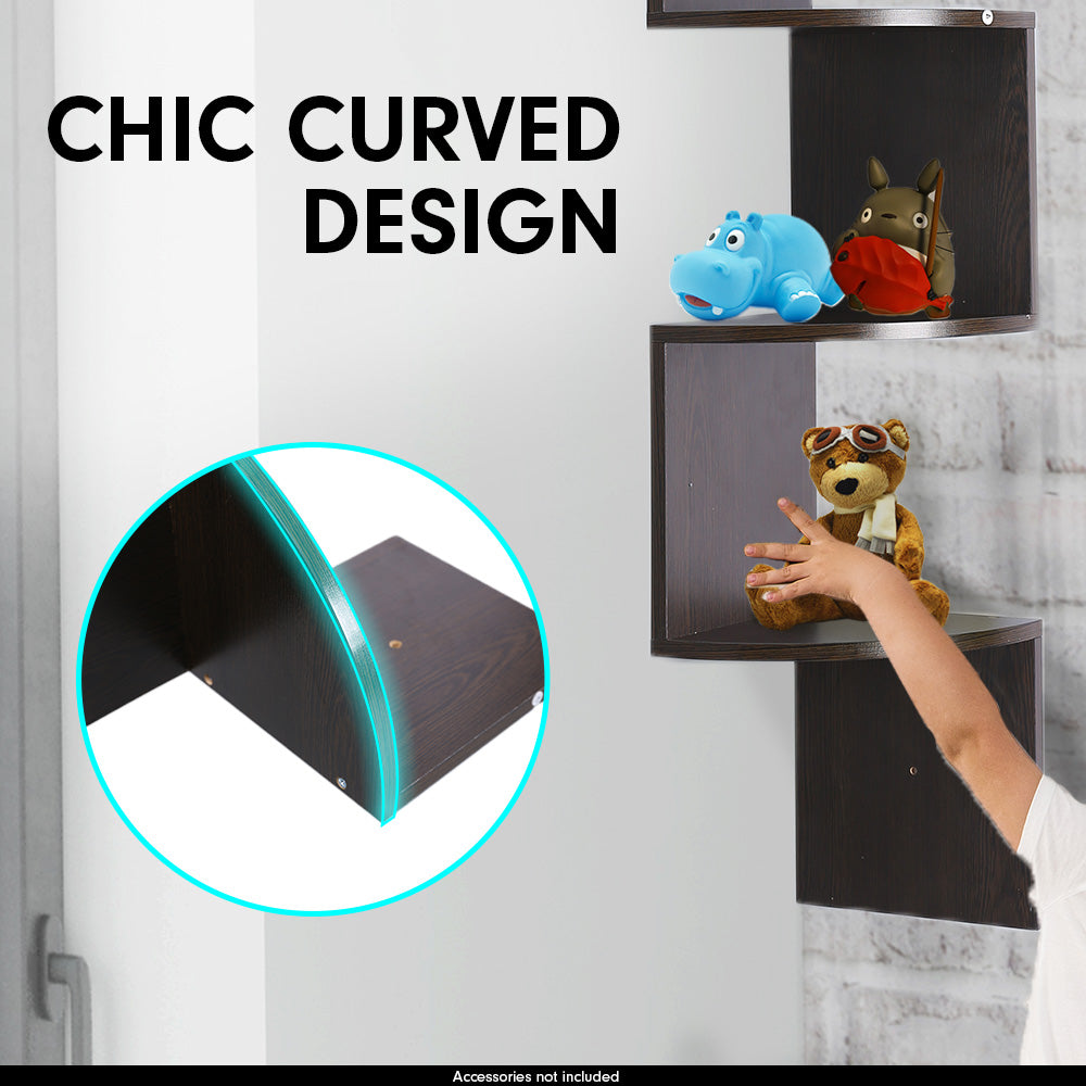 NNEDSZ Sarantino 5 Tier Corner Wall Shelf Display Shelves Dvd Book Storage Rack Floating Mounted - Dark Brown