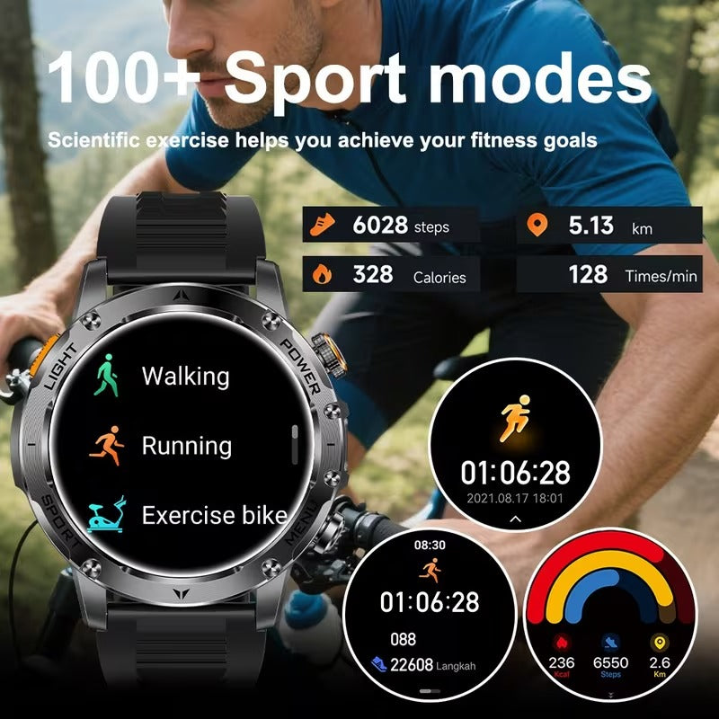 The NNETM Men’s Sports Smart Watch combines advanced fitness tracking with seamless connectivity for both iPhone and Android users. Featuring a 4.3 cm full touch IPS screen, it displays notifications, calls, and sports data clearly and efficiently. With a 1000 mAh battery and IPX-8 water resistance, this watch is built to keep up with your lifestyle.