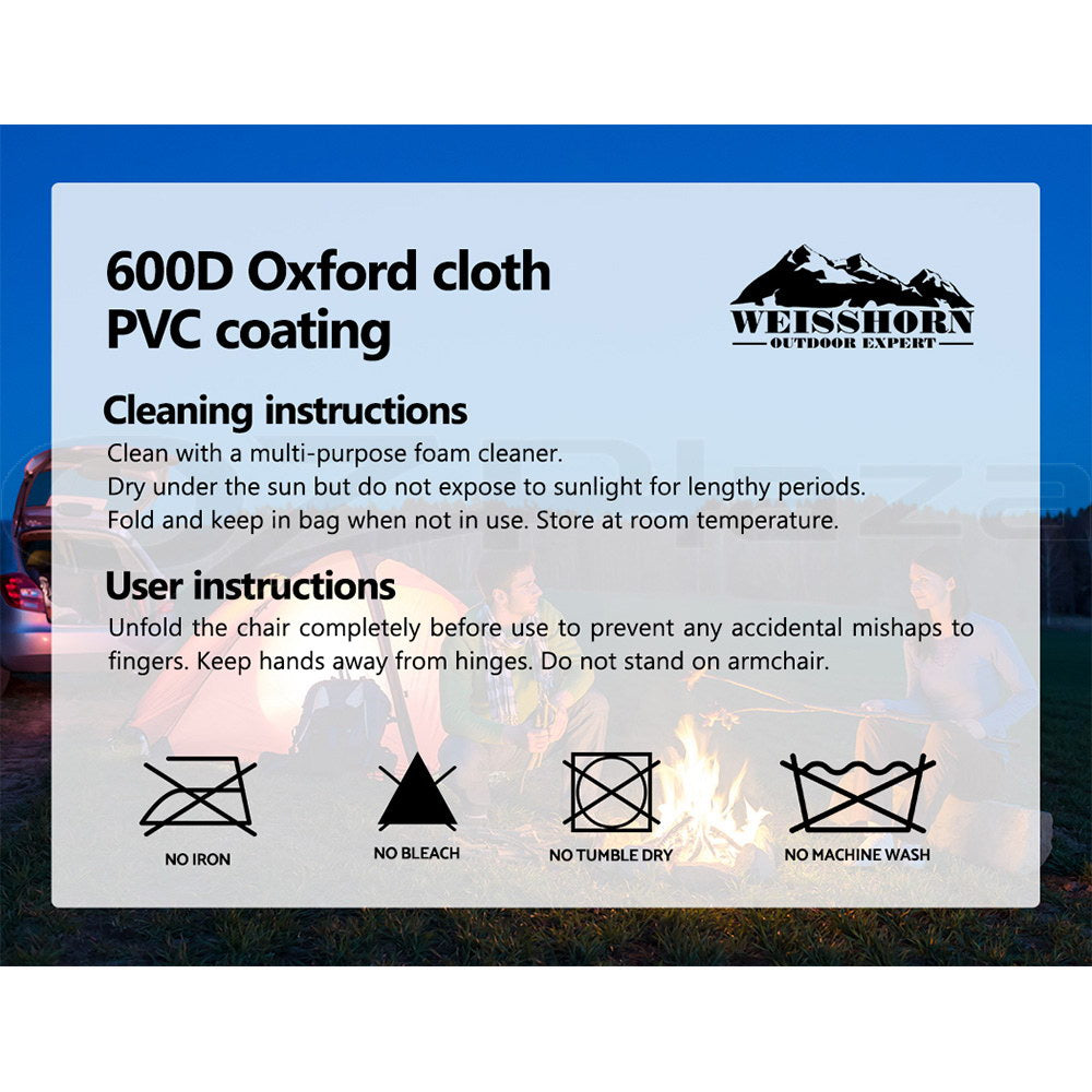 The chairs are made from powder coated high tensile steel frame and is suitable for both indoors and outdoors. It is lightweight but can carry up to 120kg worth of weight. The 600D oxford fabric is built to be resistant.