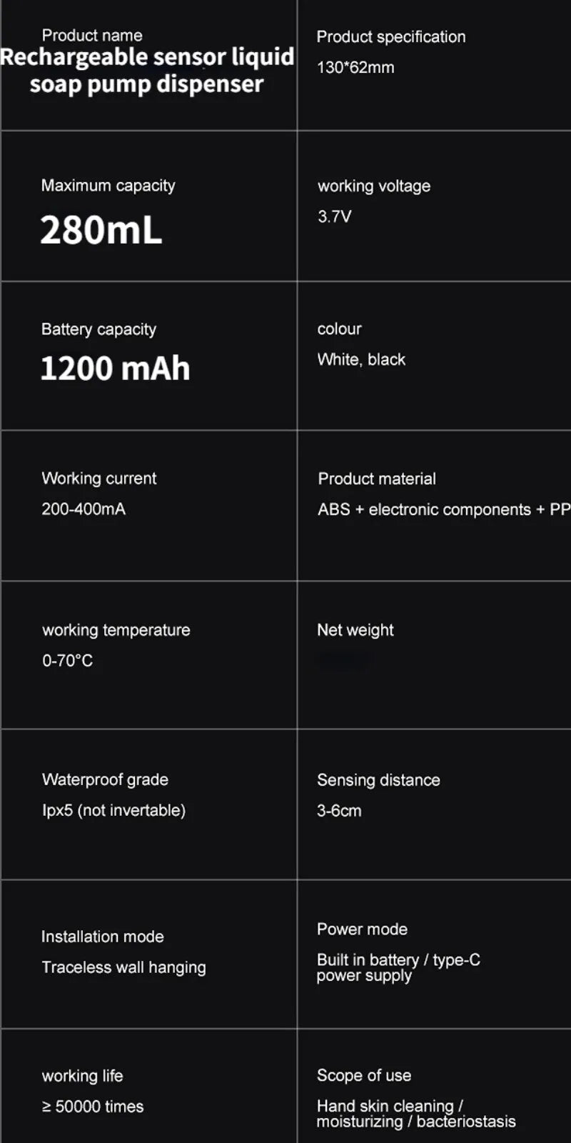 - 280ml Capacity: Ample storage for liquid soap, reducing the need for frequent refills.