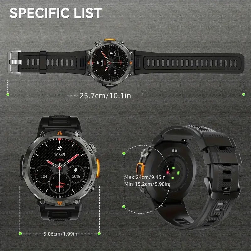 The NNETM KE3 Sports Smart Watch is designed for users who want to stay connected and active at the same time. It allows wireless calling, fitness tracking, and music control, making it ideal for workouts or outdoor adventures. Its 3.68 cm HD TFT display ensures clear visuals, while the built-in LED flashlight adds convenience for night activities.