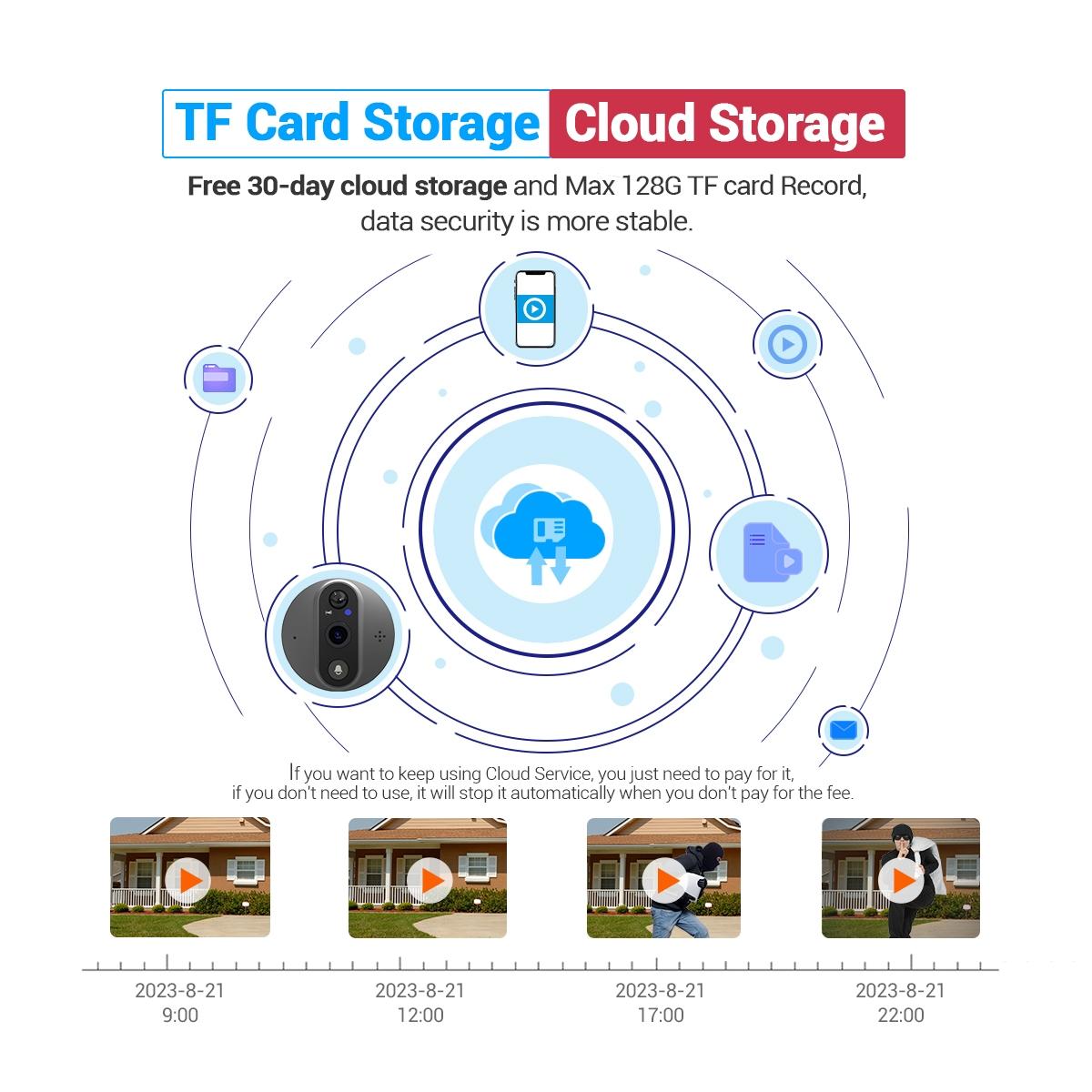 NNEIDS Smart Wifi Door Viewer With Wide-Angle Pir & Night Vision - 1080P 4.3 Inch Dingdong Photo White