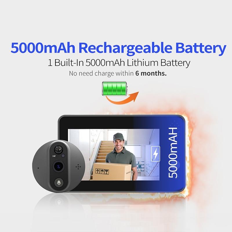 • 1 x 1080P 4.3 Inch Smart Wifi Digital Door Viewer Supports Wide-Angle Pir & Night Vision & Dingdong Photo White