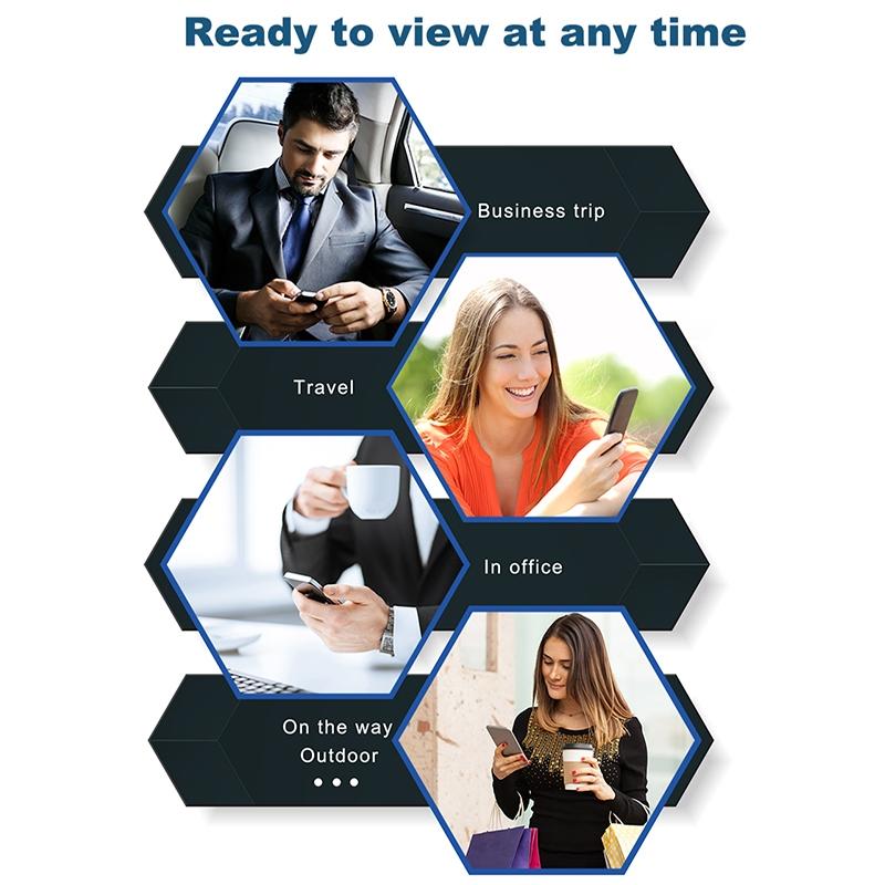 • Multiple monitoring options: device buttons, motion detection, and remote real-time viewing
