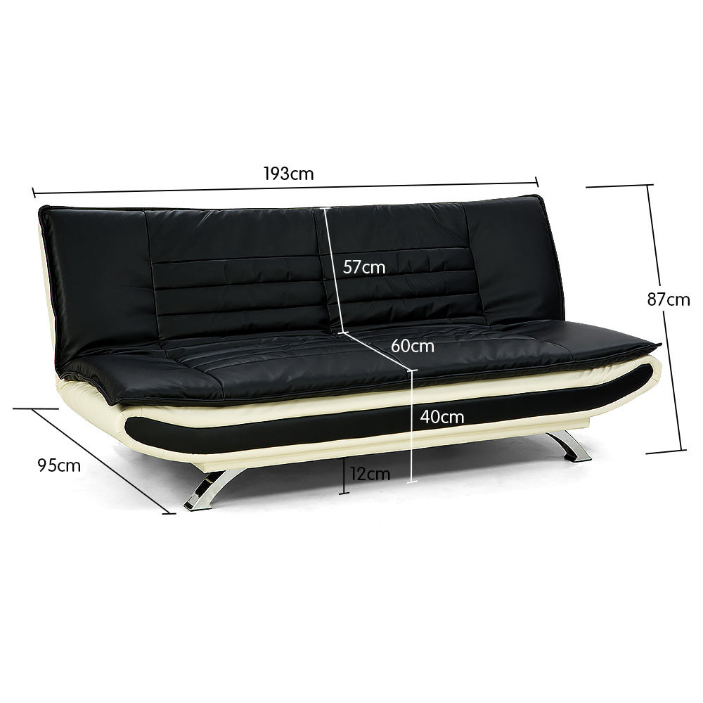 Measuring (w) 193cm x (d) 95cm x (h) 87cm, this sofa bed features wooden frame as well as stylish dual colour and comfort seating to provide a sofa that's truly comfortable to sink back into and relax.