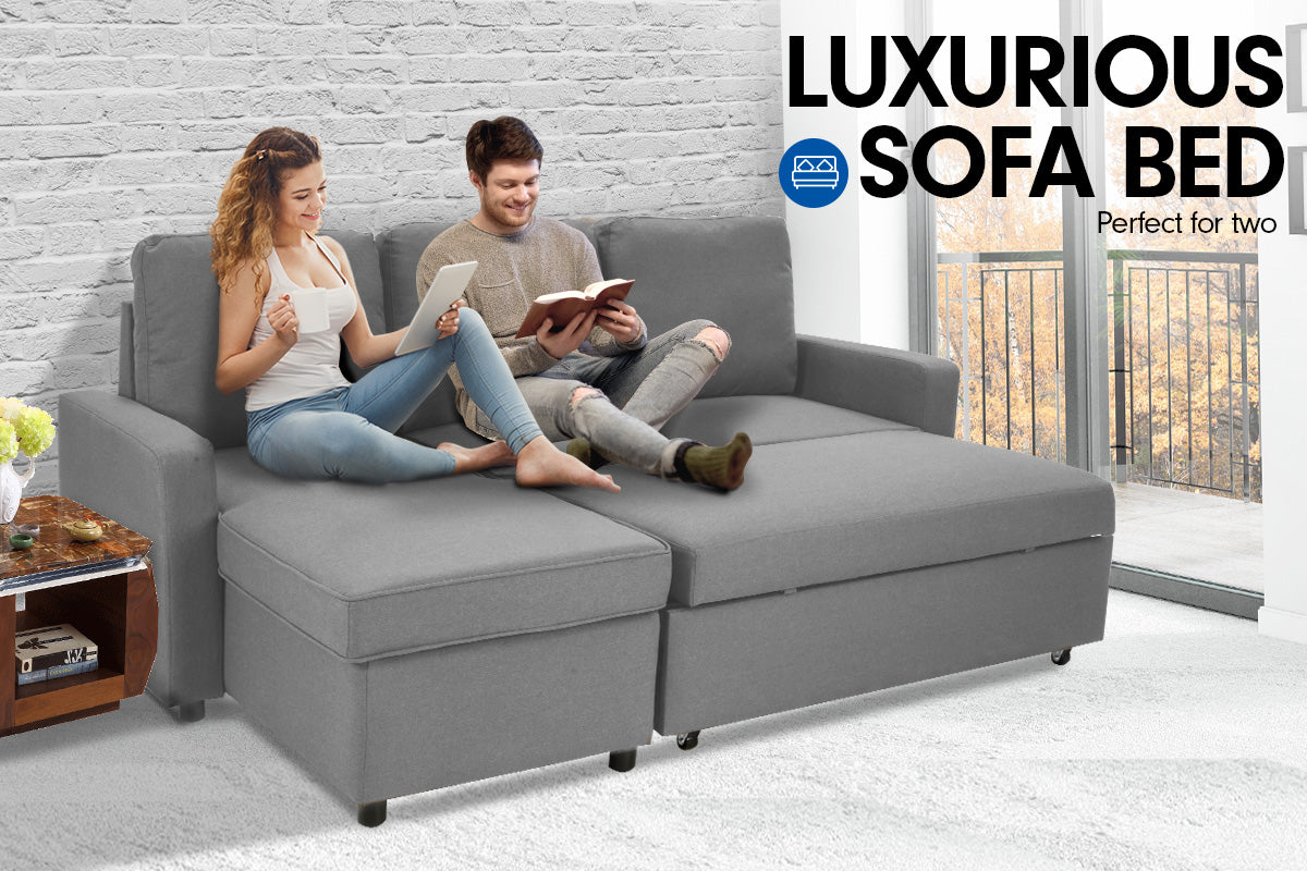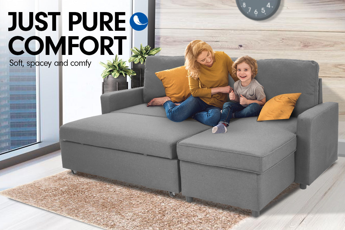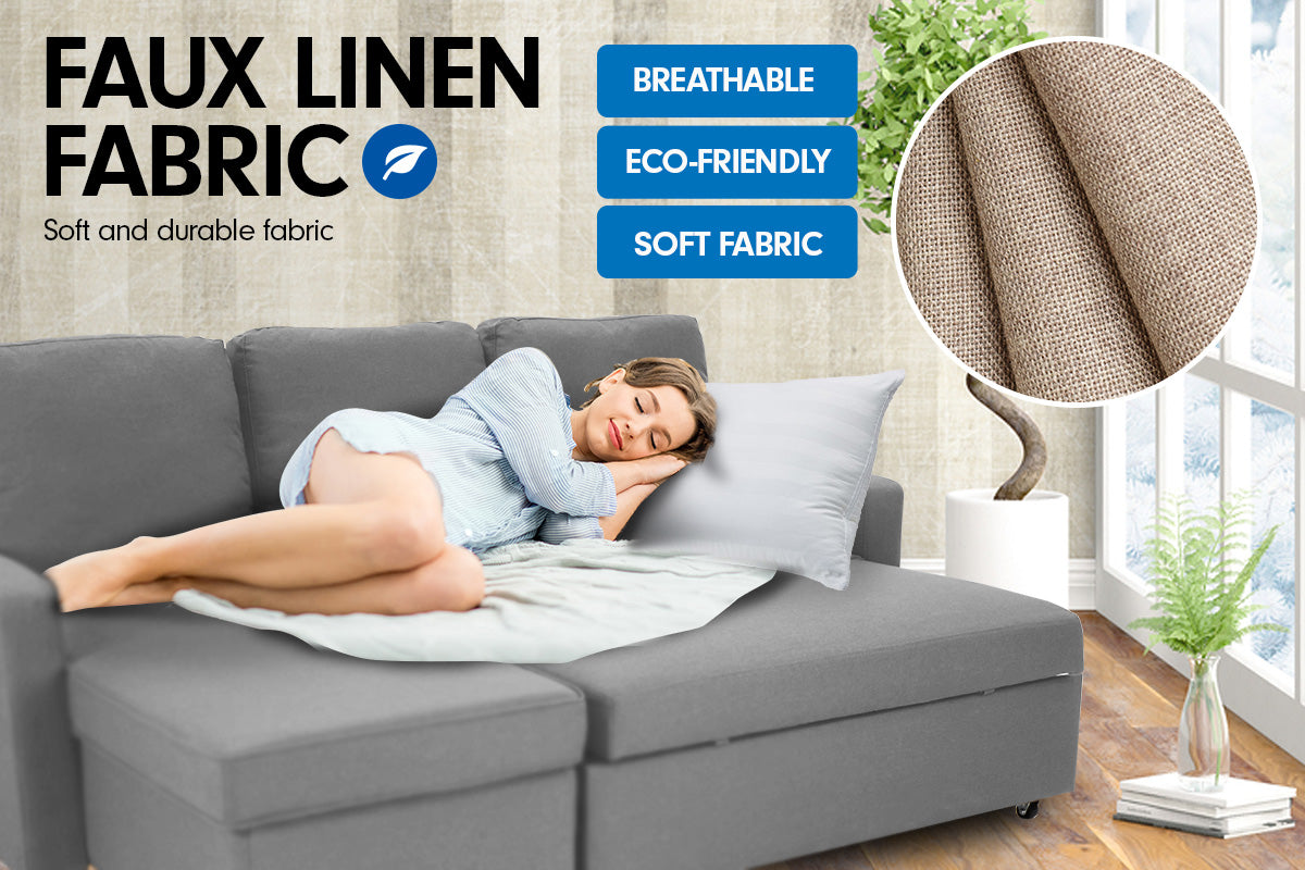 Upholstered in fabulous linen fabric, the 3-seater Storage Sofa Bed exudes a timeless look and feel.