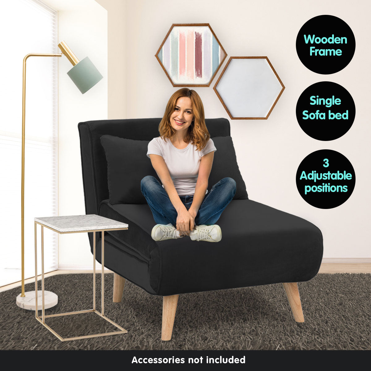 NNEDPE Sarantino Adjustable Chair Single Sofa Bed Faux Velvet - Black